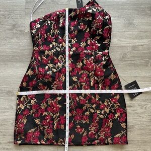 Lulu's Black Red Floral Jacquard One-Shoulder Mini Dress Sz M cocktail prom