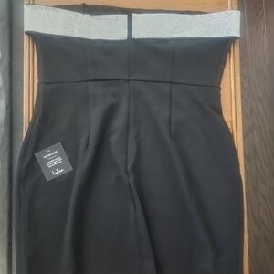 Chic black strapless dress with a shimmering silver detail. Perfect for elegant evenings.