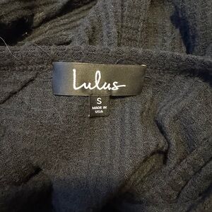 Stylish black ribbed tee with long sleeves. Perfect for layering or wearing alone. Does catch fuzzies but easily lint rolled. Only worn a handful of times. Back is open.