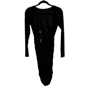 Lulus Black Ruched Open Back Long Sleeve Mini Dress Size XS NWT