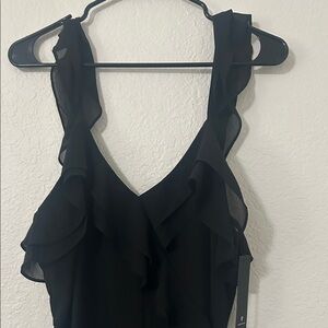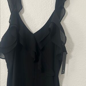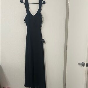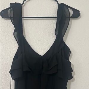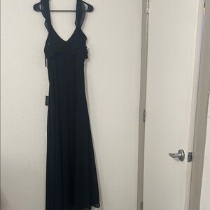 Chic black maxi dress with elegant ruffles. Ideal for formal events.
