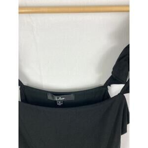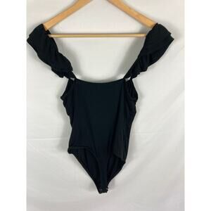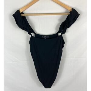 Lulus Black Ruffle Sleeve Ribbed Bodysuit Size Large