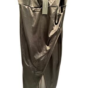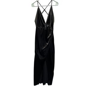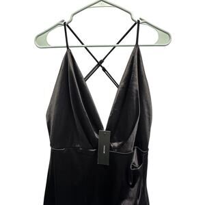 Lulus Black Satin Slip Dress Crisscross Back Maxi Gown Small NWT Sexy Coquette