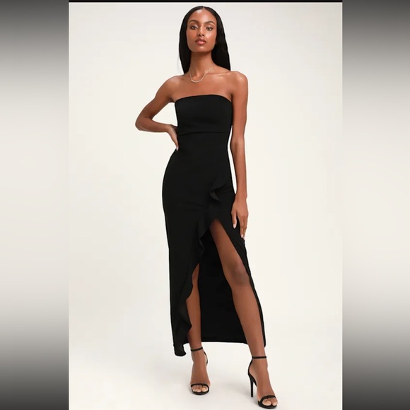Lulu's Black Strapless Ruffle Dress