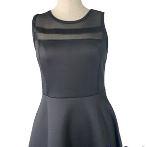 Lulu’s Black Stretch Fit & Flare Midi Dress Mesh Panels - Black, Sz Medium
