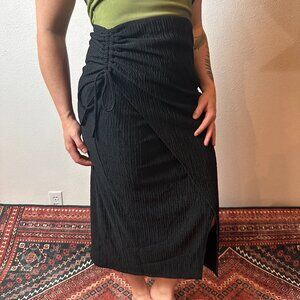 Lulus Black Textured Wrap Maxi Skirt Cinched Side Size XL