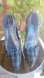 Black and white tweed high heel. Pointy toe. Size 8.5. Good pre-owned condition with minimal wear to the fabric.