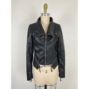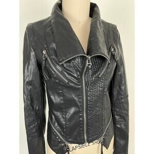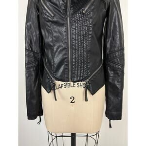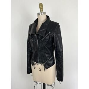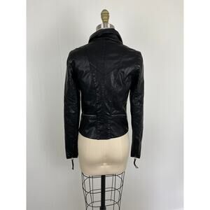 Lulus Black Vegan Faux Leather Moto Jacket XS Biker Gothic Grunge Minimalist