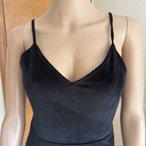 Lulu’s black velvet asymmetrical fringe spaghetti strap sleeveless midi dress