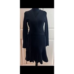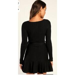 Lulus Black Warm Emotions Skater Mini Sweater Dress, size Large