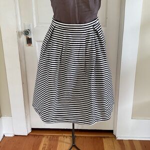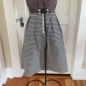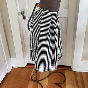 Lulus black and white striped plead front A-line skirt, size large. Would best fit approximately size 8 to 10
