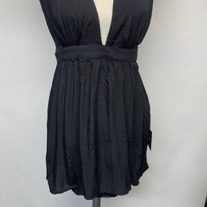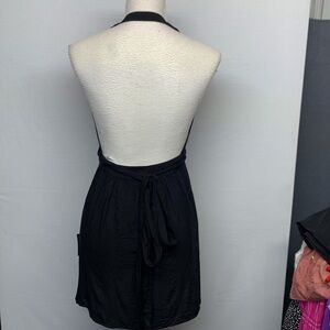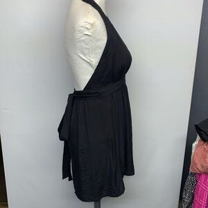 Chic black wrap dress with halter neck. Ideal for versatile styling.