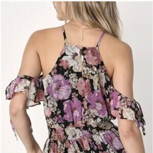 This gorgeous Lulu's maxi dress is sure to turn heads! The combination of black and purple is so elegant, and the flutter sleeves add a touch of whimsy. It is new with tags and in perfect condition. It is in women's size medium. Don't miss out on this beautiful dress! Make it yours today!