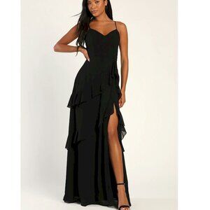 Lulus Blessed with Beauty Black Ruffled Sleeveless Maxi Dress Size Small New with Tags NWT