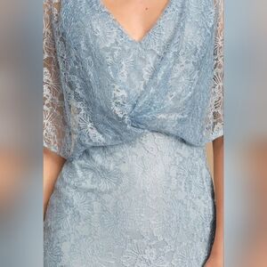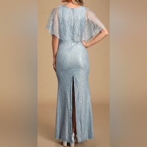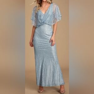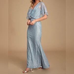 Lulus Bliss Delight Light Blue Lace Flutter Sleeve Maxi Dress XS