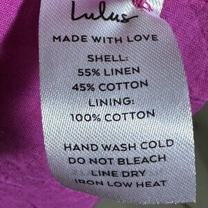 The Lulus Blissful Afternoon Hot Pink Linen Tie-Back Midi Dress is a stylish and comfortable option for any summer occasion. Made from breathable linen fabric, this sleeveless dress features a solid pink color with a zip closure and button accents. The midi length and tie-back detail add a touch of sophistication, while the lining ensures a flattering fit. Perfect for travel, parties, or casual outings, this dress is a versatile addition to your summer wardrobe. Machine washable and in size L, it is a must-have for any woman looking for a chic and trendy outfit.