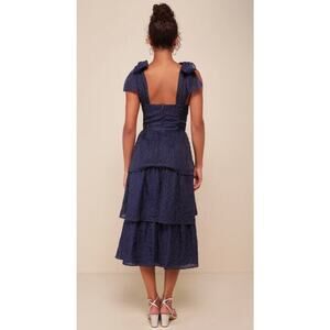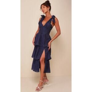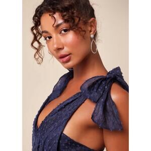 Lulus Blissful Direction Navy Tie-Strap Clip Dot Bustier Midi Dress M