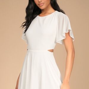 Lulus Blissful Love Ivory Cutout Mini Skater Dress White - Size XL