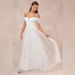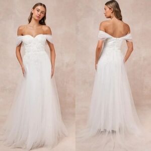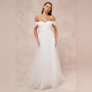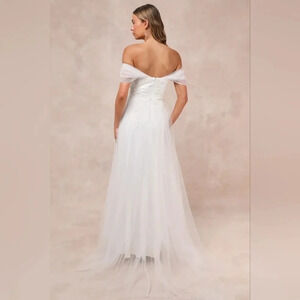 Lulus Blissfully Romantic White Tulle Off-the-Shoulder Maxi Dress Bridal. New without tags. See all pictures for details. Currently SOLD OUT online.