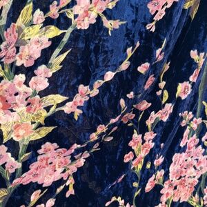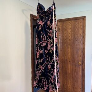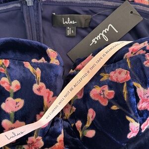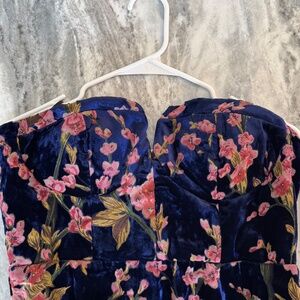 Lulus Bloom In Mind Navy Blue Floral Print Velvet Strapless Maxi Dress - Size L