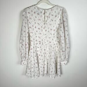 Lulus Blooming Into Love White Floral Print Long Sleeve Mini Dress Size Small