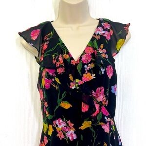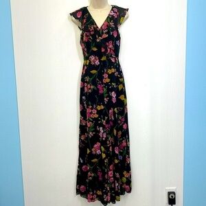 Lulus - Blooming Love Black Floral Print Sleeveless Ruffled Lined Jumpsuit Size XS