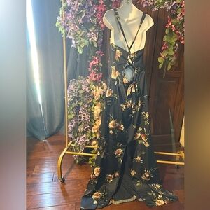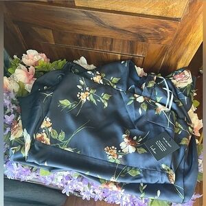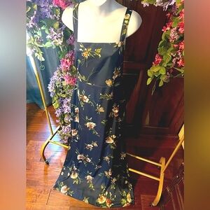Lulus Blooming So Sweetly Navy Blue Floral Satin Lace-Up Maxi Dress Size…