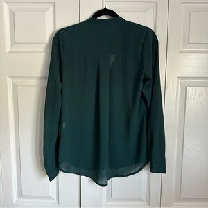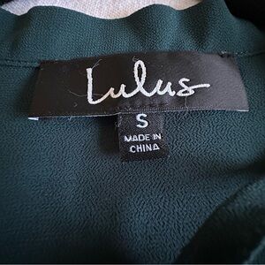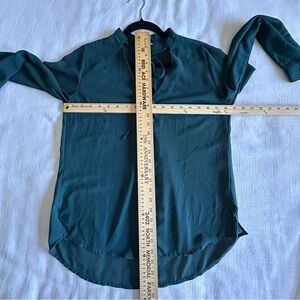 Lulus Blouse Womens S Green Tie Neck Button Front Long Sleeve Keyhole Holiday