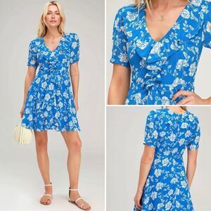 Lulu’s Blu White Ximena Floral Ruffle Mini Dress Sz M NWT is new with tags