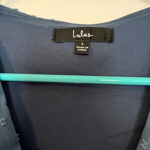 Lulu's Blue Asymmetrical Ruffled Wrap Dress