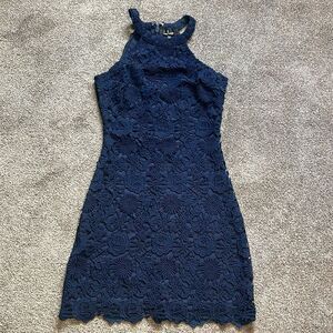 Navy Blue Lace Mini Dress from Lulus. Size XS