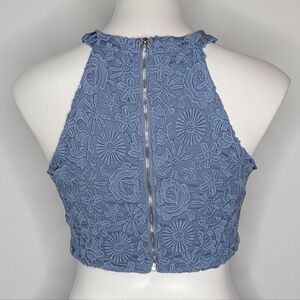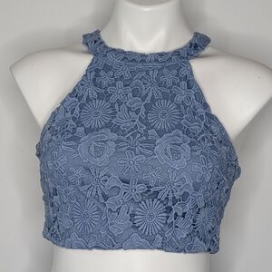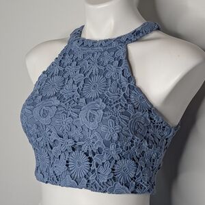 Lulus Blue Embroidered Floral Lace Crop Halter Top XS. Great condition.