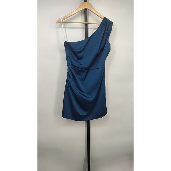 Elegant one-shoulder design. Rich blue color. Perfect for evening events.