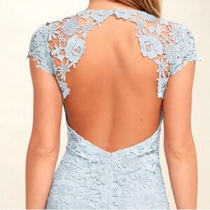 This stunning light blue sheath dress from Lulu's features elegant flutter cap sleeves and a classic crew neckline, perfect for a wedding guest or cocktail event. The mid thigh length and fitted silhouette create a sophisticated look, while the delicate lace fabric adds a touch of romance.