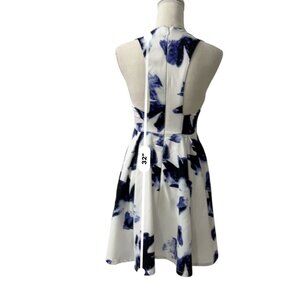 Lulus Blue & White Floral Fit & Flare Babydoll Dress V-Neck Sleeveless Size S