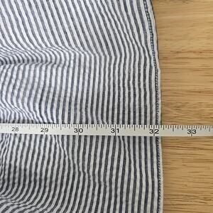 Chic mini dress with blue and white stripes. Features a ruffled hem and adjustable waist tie. Perfect for casual outings.