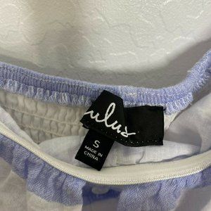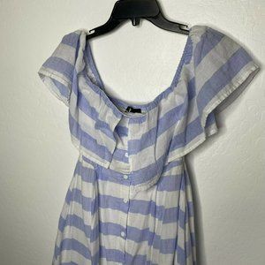 Lulu's Blue and White Striped Off-Shoulder Midi Dress