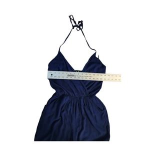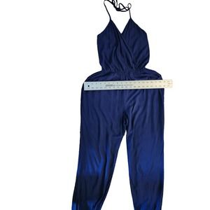 Lulus Blue halter top jumpsuit with pockets and wrap top size medium