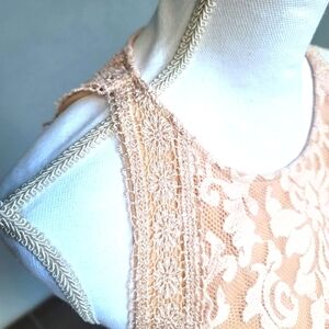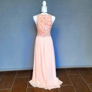 Lulus ✦ Blush Lace Bodice Maxi Dress ✦ w/ Chiffon Skirt & Mesh Detail Sz S NWT