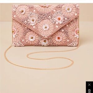 Chic clutch with floral embellishments. Perfect for elegant outings.