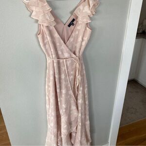 Lulus Blush Pink Jacquard High-Low Wrap Prom Bridesmaid Maxi Dress, Size small