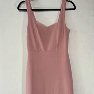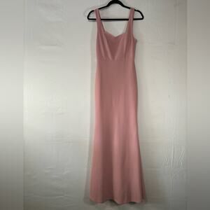 Elegant blush pink maxi dress. Sleeveless with a fitted bodice. Flared hem for a graceful look.