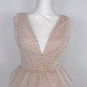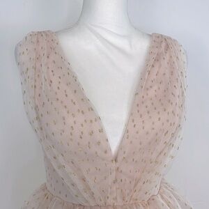 Lulu’s Blush Pink with Gold Dots Tiered Sleeveless Tulle Mini Dress. Size Small