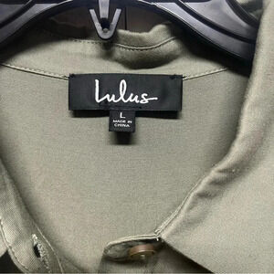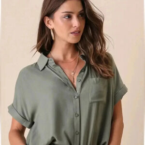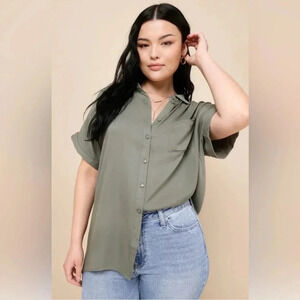 Lulus Blythe Olive Green Short Sleeve Button-Up Top Size Large 100% Rayon