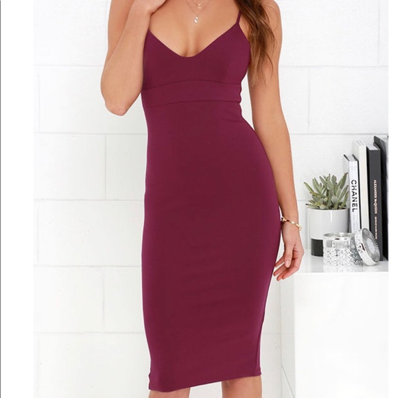 Tight fitting midi dress. Color is most true to stock photo (maroon). Slit in back. Worn once. Great condition.