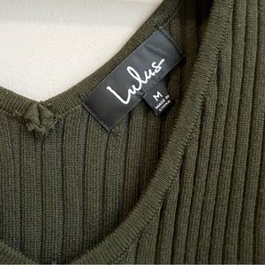 This is a Lulu’s Bodycon Dress size M. Worn once but still in great condition. This dress has a nice stretch to it. This dress retails for $32.