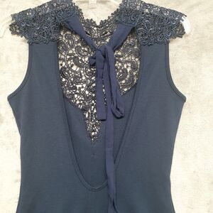 Lulu's Bodycon Lace Top Open Back Navy Blue Size Small Elegant Cocktail Dress