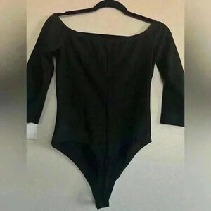 Lulus Womens Bodysuit Size Large Black Solid Off The Shoulder