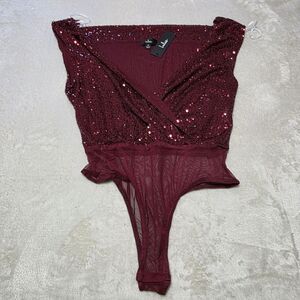 Lulus Bodysuit Evening of Wonder Sz Medium Shiny Burgundy Sparkly Sequin Holiday