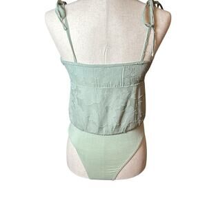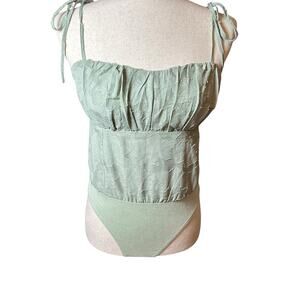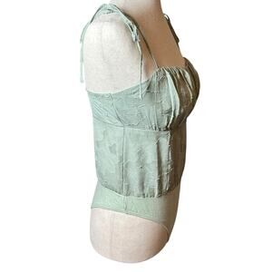 Lulus Bodysuit Green Strappy Milkmaid Floral Small Fairycore Renfest Costume